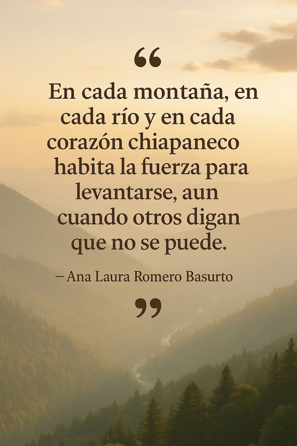“Las montañas, los ríos y los corazones de Chiapas guardan la fuerza indomable de un pueblo que nunca se rinde, aunque el mundo le diga que no puede”.