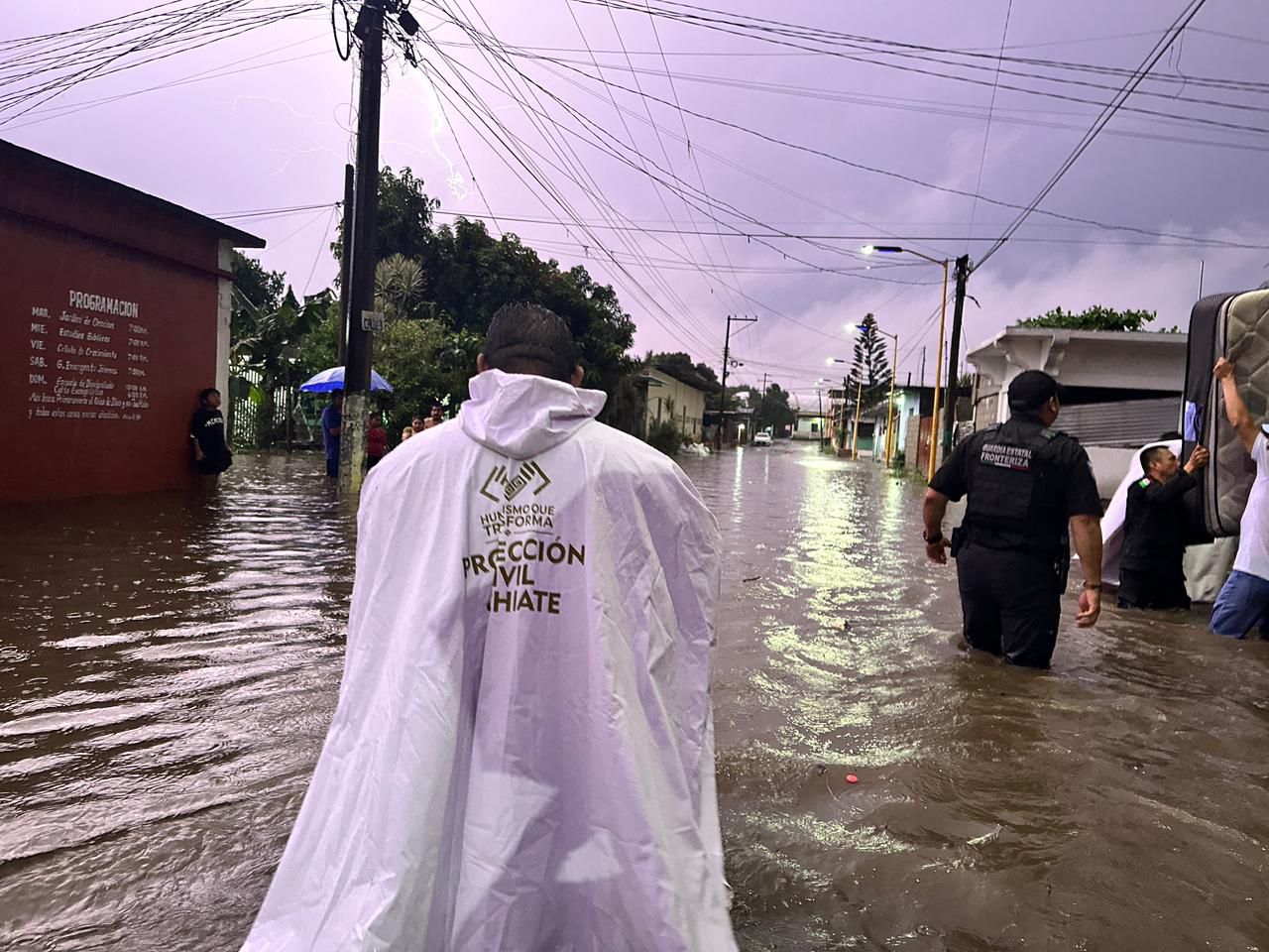 La noche del martes, el ayuntamiento de Suchiate habilitó un refugio temporal con capacidad para 150 personas; sin embargo, la mayoría de las familias optó por resguardarse en casas de amigos o parientes. Brigadas de la Secretaría de Protección Civil Estatal, junto con elementos del Ejército y la Marina, recorrieron las zonas más afectadas para realizar labores de evacuación, limpieza y desazolve.