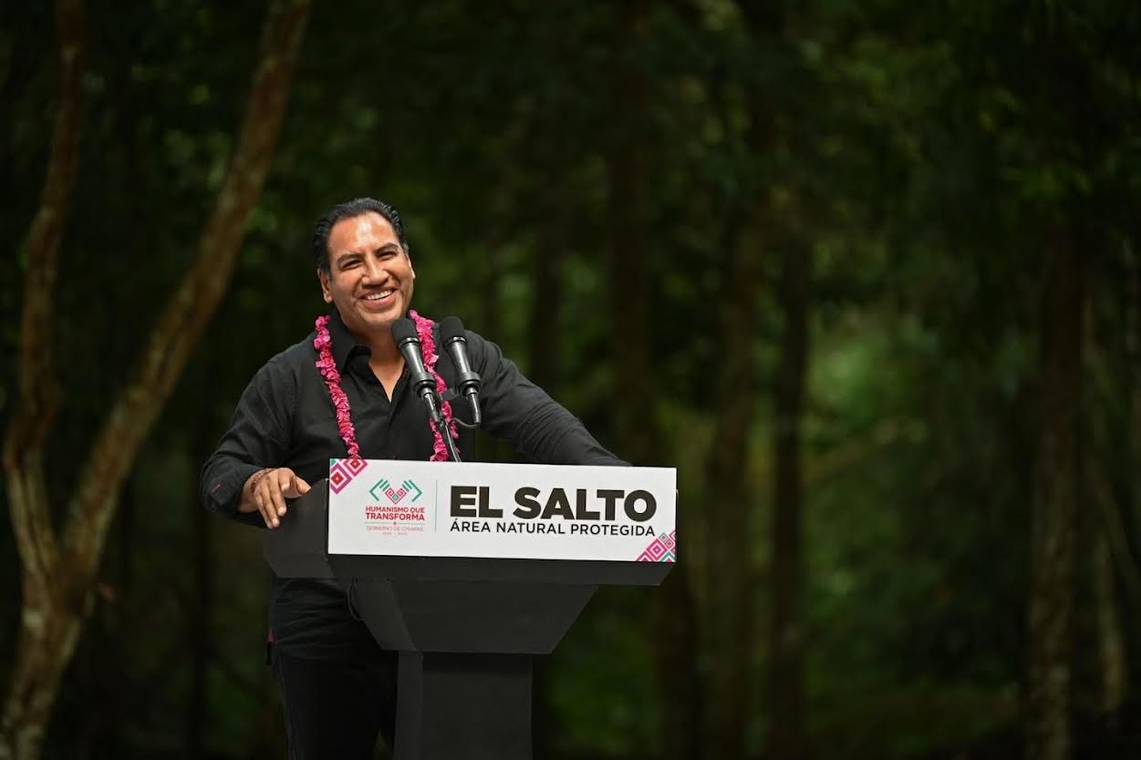El gobernador Eduardo Ramírez Aguilar encabezó la entrega del certificado de declaratoria de Reserva Natural Comunitaria denominada Cascada El Salto,  al ejido La Reforma, en el municipio de Palenque. Destacó que el Gobierno de la Nueva ERA impulsa una política ambiental enfocada en fortalecer integralmente el cuidado del medio ambiente y la preservación de los recursos naturales, con el propósito de que Chiapas vuelva a florecer.