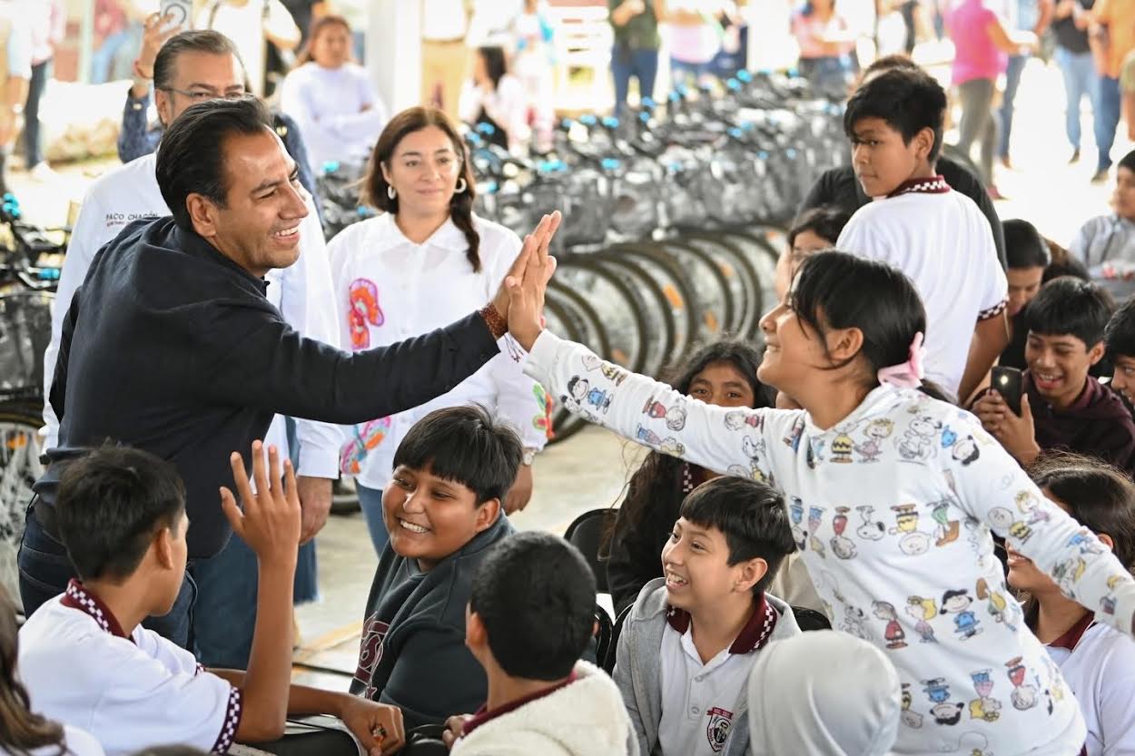 El gobernador Eduardo Ramírez Aguilar llevó alegría a niñas, niños y jóvenes de Tuxtla Gutiérrez con la entrega de apoyos de los programas A Paso Firme y Bicis que Transforman, acciones humanistas que buscan garantizar igualdad de condiciones para su desarrollo escolar, deportivo y recreativo.
