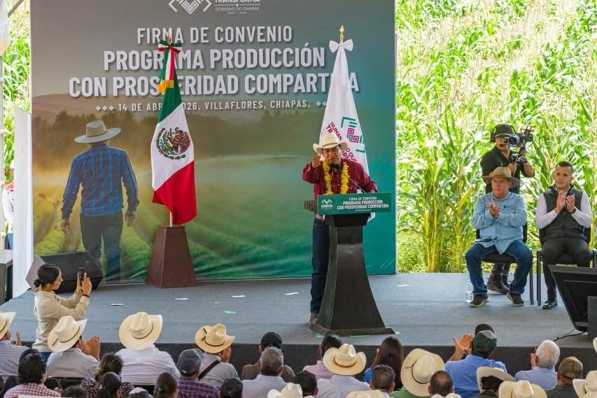 En el municipio de Villaflores, el gobernador Eduardo Ramírez Aguilar firmó el Convenio de Coordinación entre el Gobierno de Chiapas y Acreimex, para la creación de un fondo de garantía líquida destinado al financiamiento de productoras y productores chiapanecos del sector primario, agroalimentario y agroindustrial, como parte del Programa Producción con Prosperidad Compartida. En este contexto, subrayó que el Gobierno de la Nueva ERA impulsa políticas orientadas a detonar la productividad y el desarrollo rural en todo el estado.
