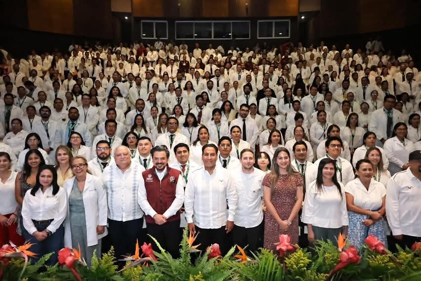 El gobernador de Chiapas, Eduardo Ramírez Aguilar, y el director general del Instituto Mexicano del Seguro Social (IMSS), Zoé Robledo, dieron la bienvenida a 371 médicos especialistas que se incorporan a laborar en hospitales de la institución en zonas urbanas y rurales.