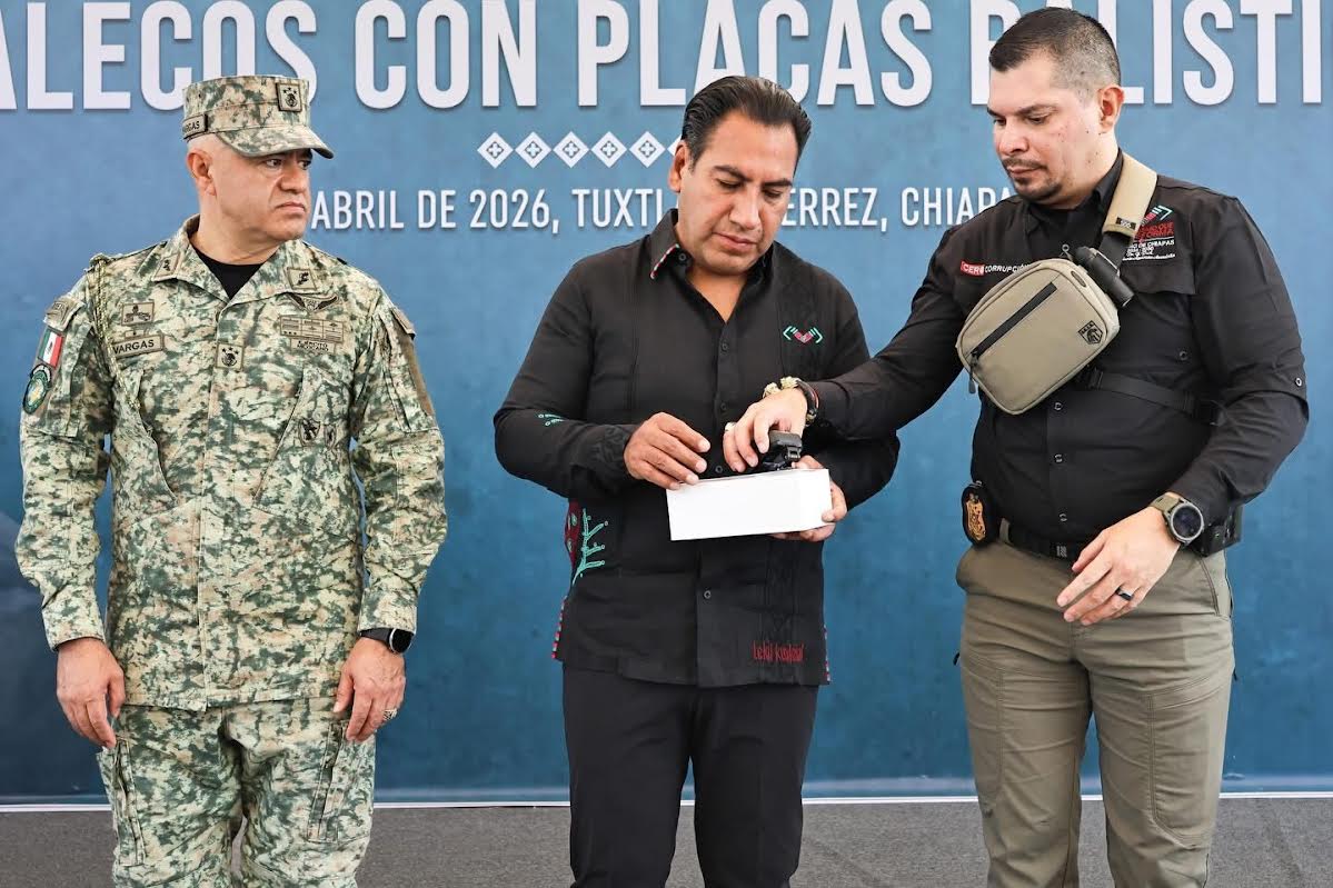 El secretario de Seguridad del Pueblo, Óscar Alberto Aparicio Avendaño, informó que en esta jornada se entregaron 500 chalecos antibalas con mil placas balísticas, así como 500 cámaras de solapa para elementos de la policía vial, lo que refrenda el compromiso de fortalecer el equipamiento durante este año en la Guardia Estatal Preventiva, la Guardia Estatal Fronteriza y las fuerzas rurales. Añadió que, en esta Nueva ERA, se trabaja con transparencia para proteger la integridad y el bienestar de las y los chiapanecos.